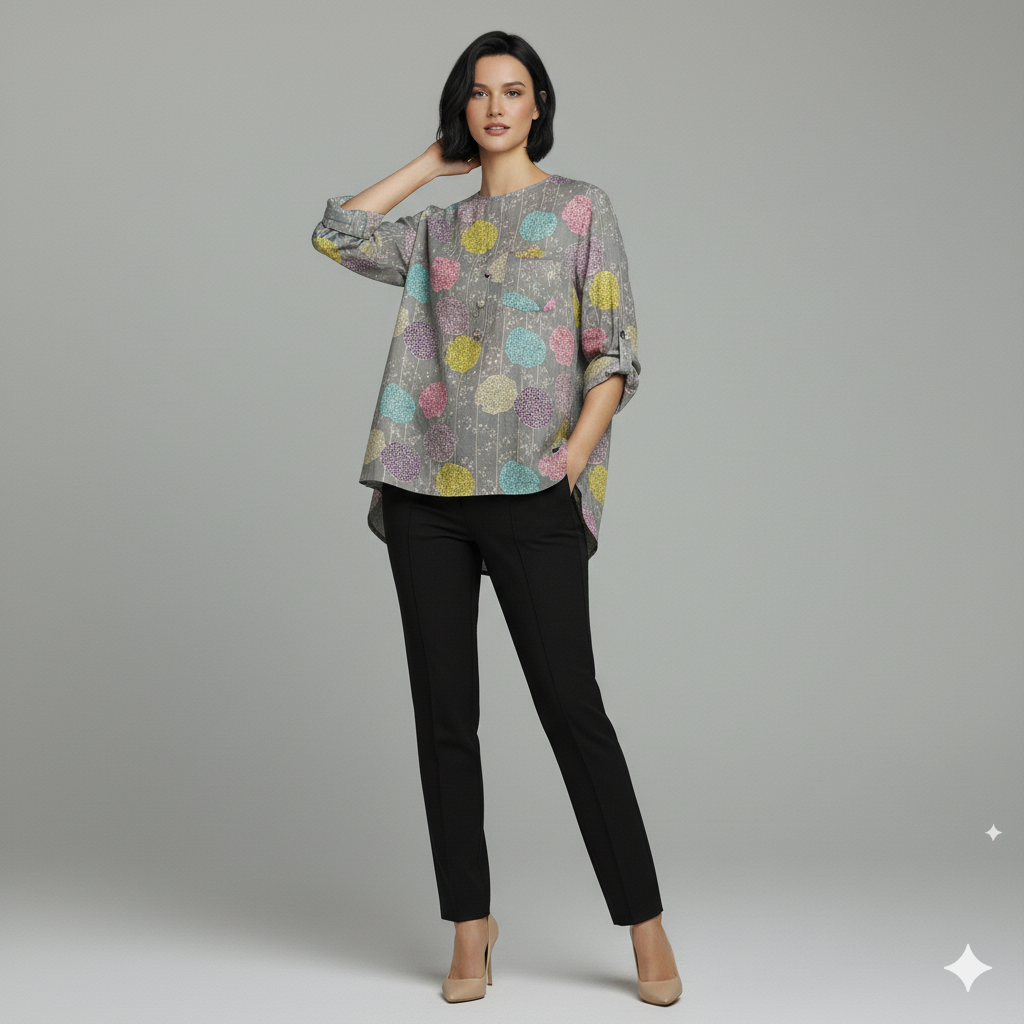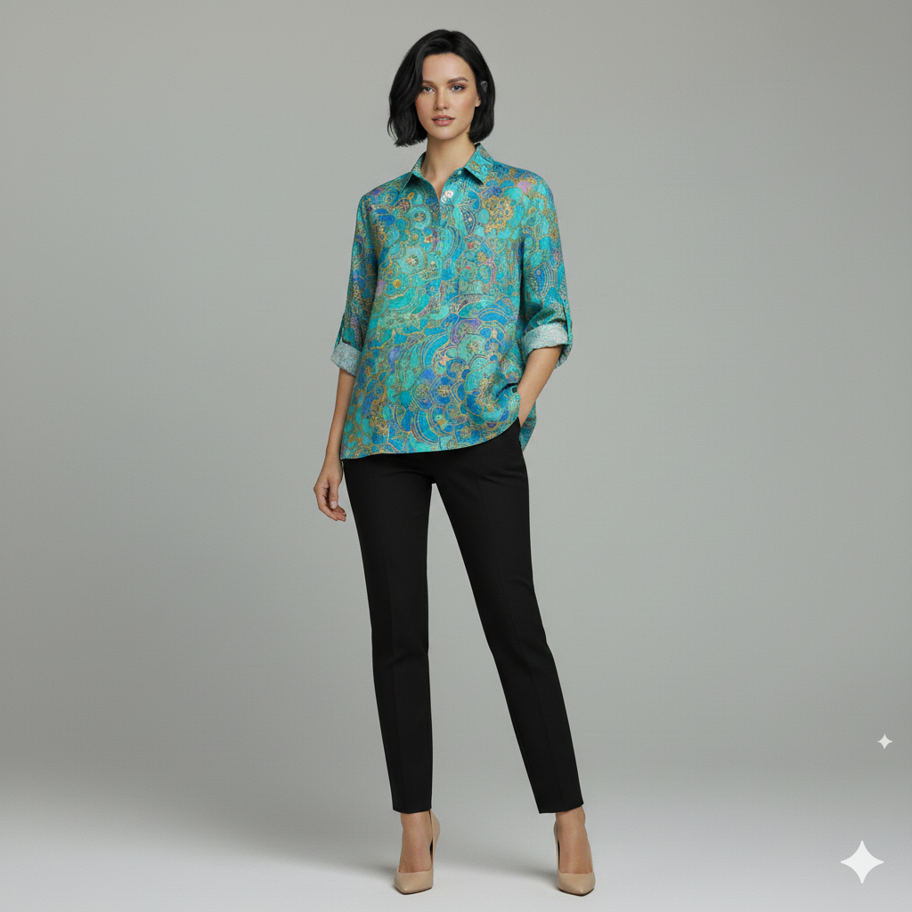 Discover the harmony of style and comfort with our exquisite blouse, perfect for any occasion. Lightweight and versatile, it's your go-to piece for a chic, sophisticated look that transitions effortlessly from day to night.