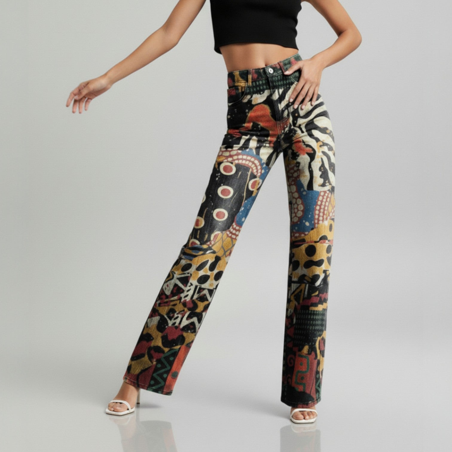 Elevate your fashion game with our luxurious Mia™ - Modern Colorful Wide Leg Pants. These statement pants, adorned with a striking color print, seamlessly blend sophistication and comfort, making them an essential addition to your wardrobe this season.