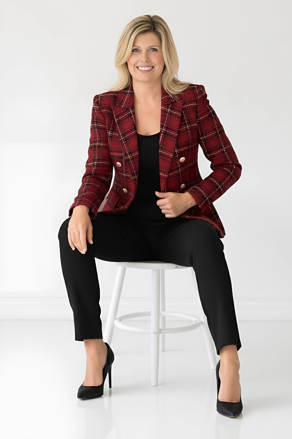 Step into the spotlight with our ABBEY Stylish Checked Blazer, where classic charm meets contemporary flair. With its eye-catching check pattern and sophisticated double-breasted style, this blazer is your perfect companion for any occasion, from brunch to a night out.
